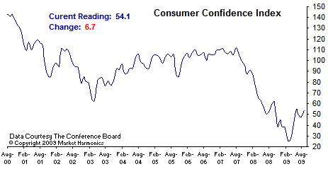 Here are a couple of other sources for consumer confidence, with opposite readings. First from Gallup: U.S. Economic Confidence Steady at Relatively Improved Level